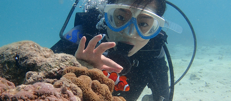 NEARの少人数制体験ダイビングは一人旅でも気軽に石 垣島の海をお楽しみいただけます。